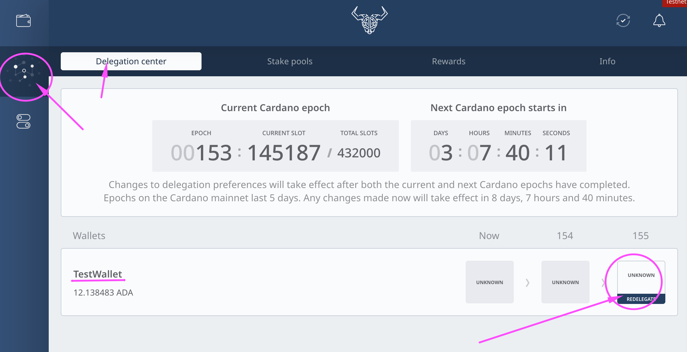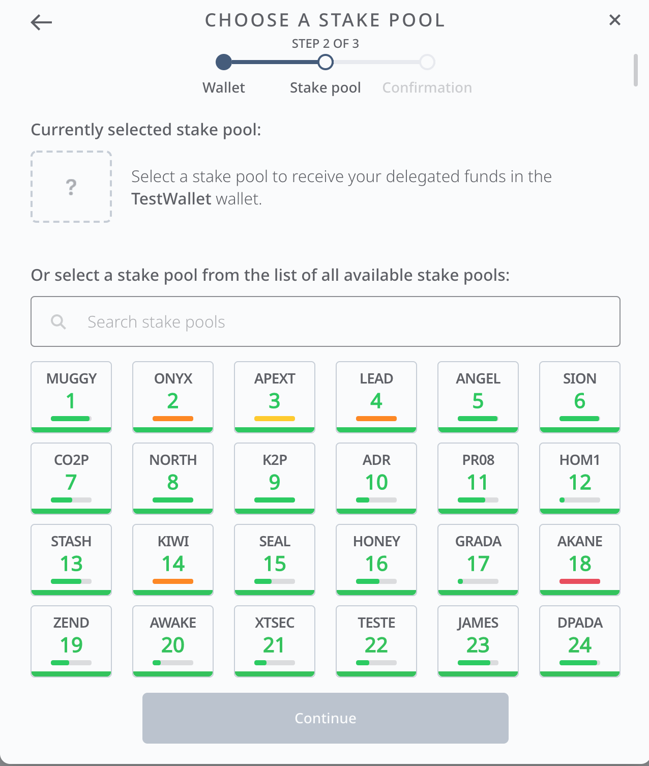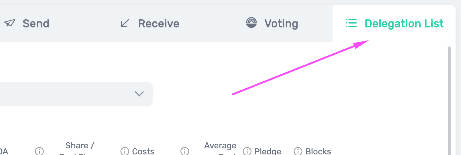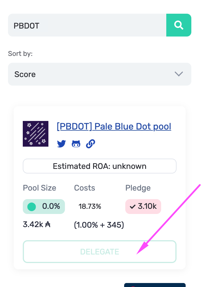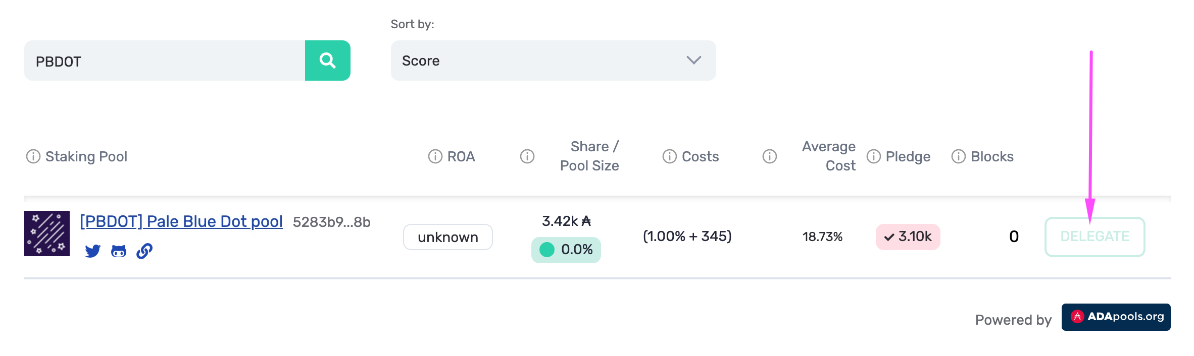 Find a stake pool you want to delegate your ADA to and click “Delegate”.